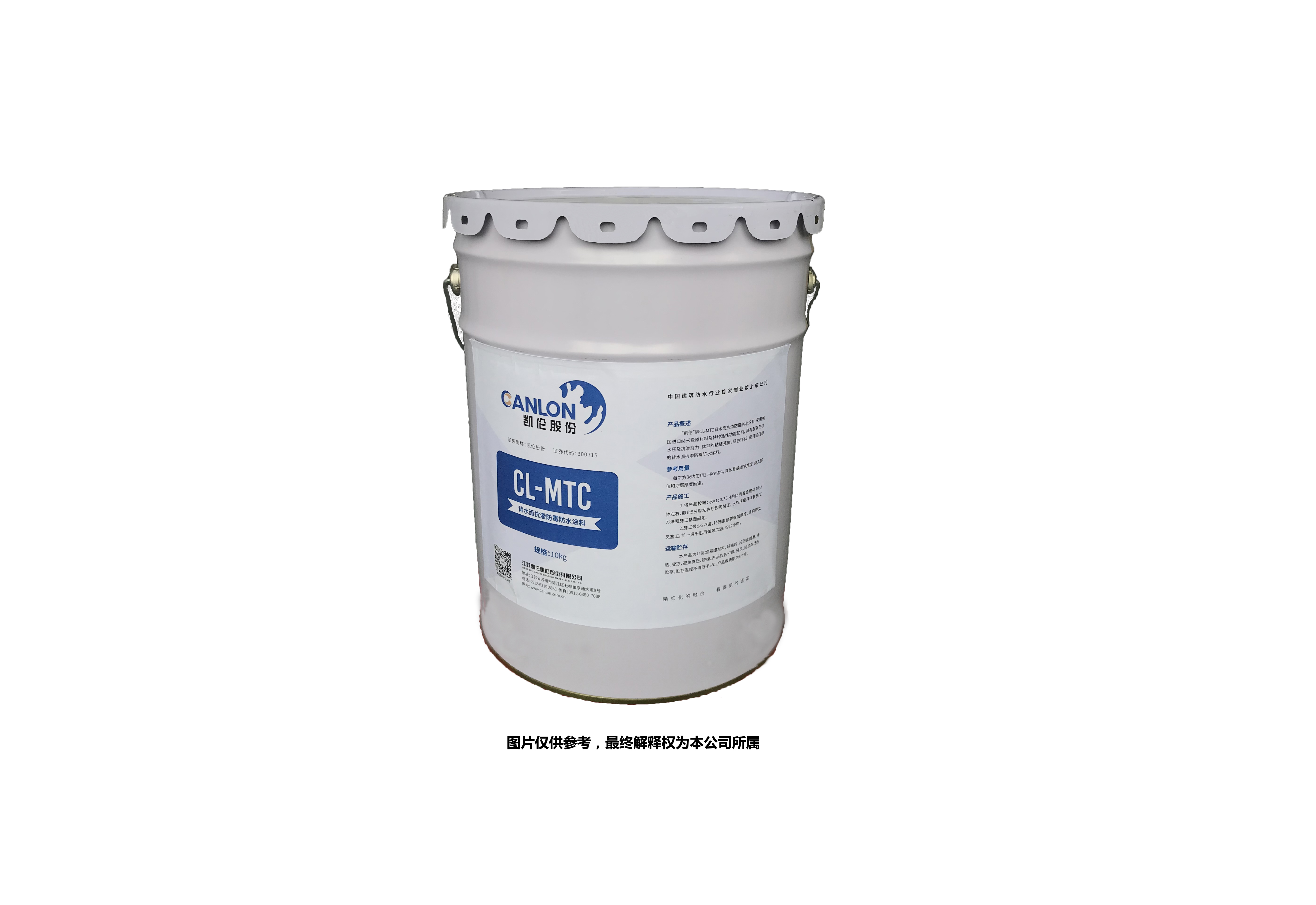 “凯伦”牌CL-MTC背⽔⾯抗渗防霉防⽔涂料,采⽤美国进⼝纳⽶级原材料及特种活性功能助剂,具有良好抗⽔压及抗渗能⼒,优异的粘结强度,绿⾊环保,是⽬前理想的背⽔⾯抗渗防霉防⽔涂料。